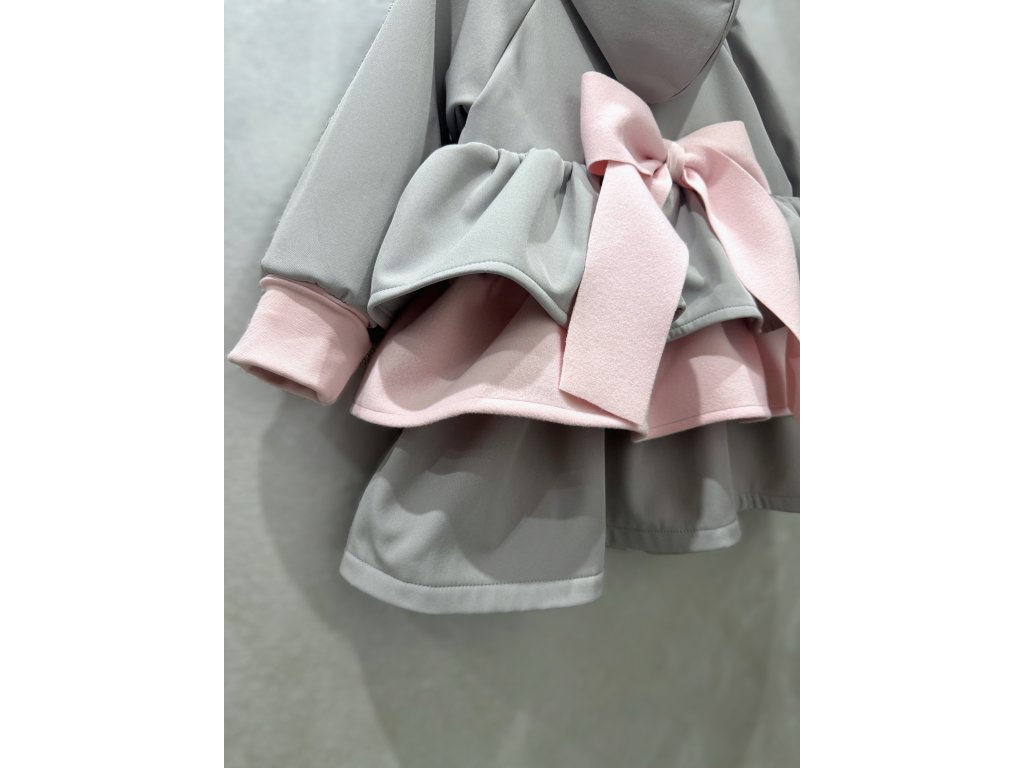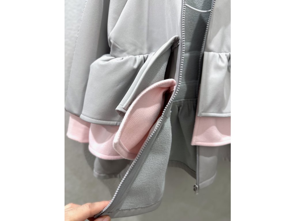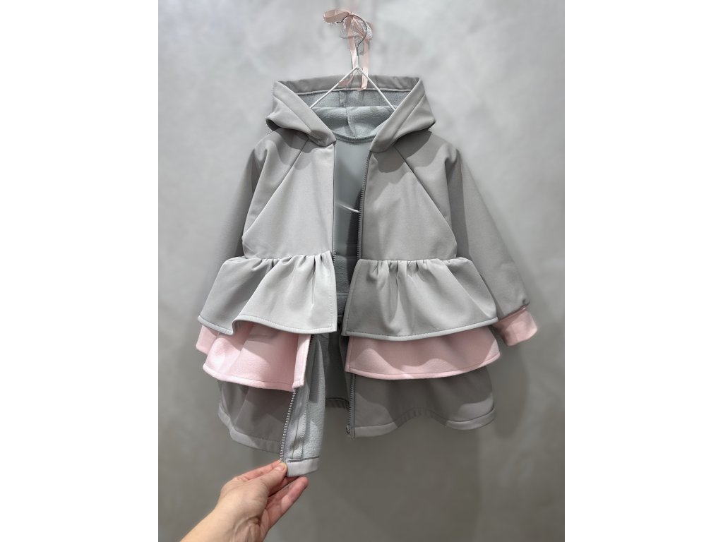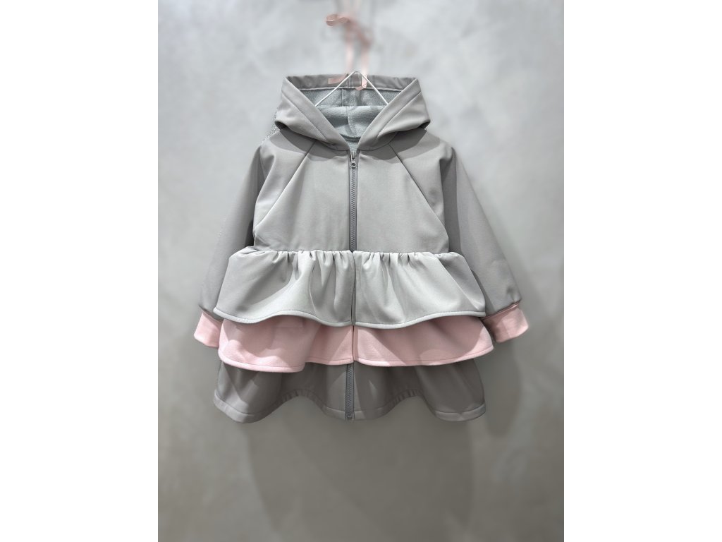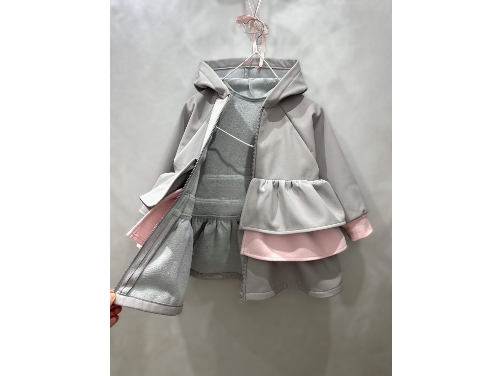 Pískací 3volánový softshellový kabát - sv. sivý