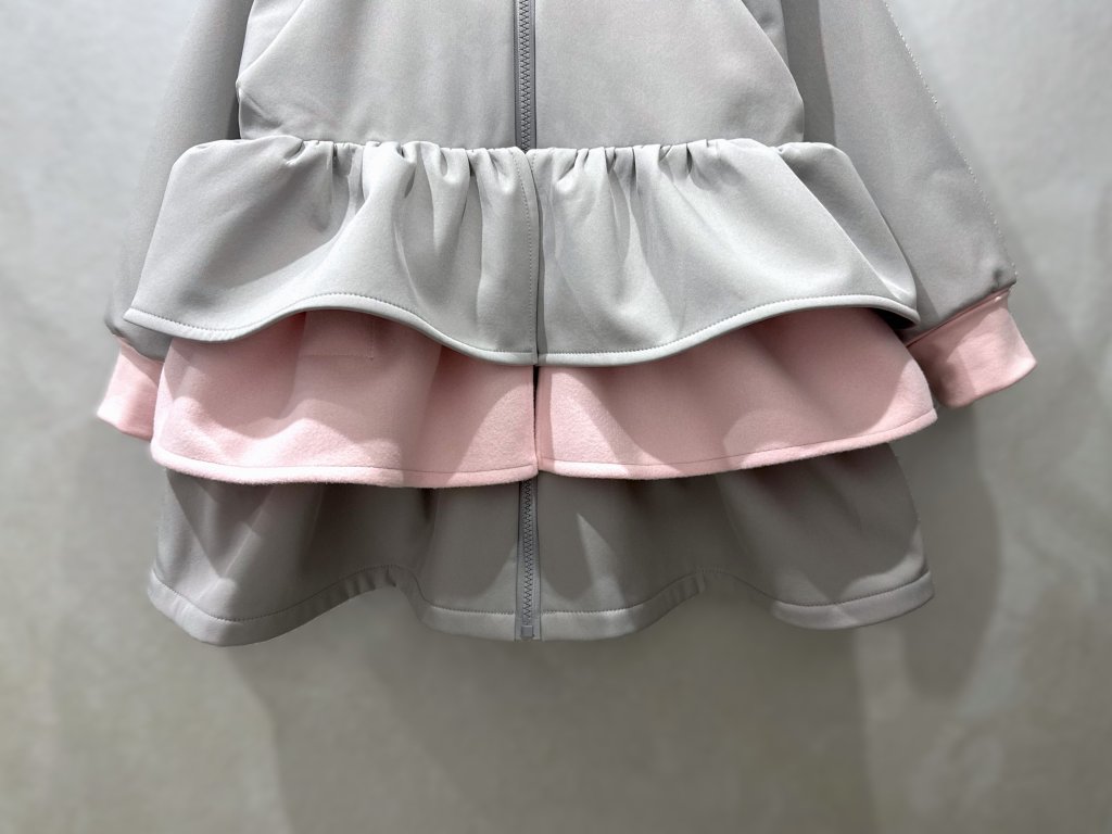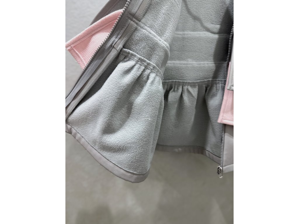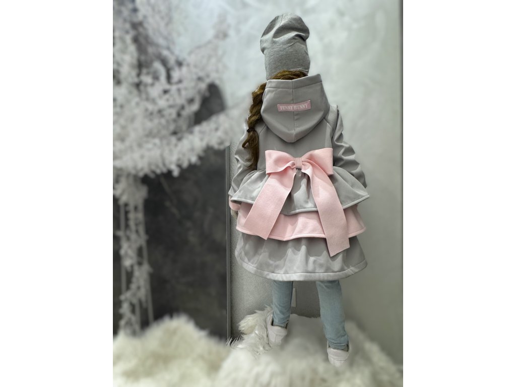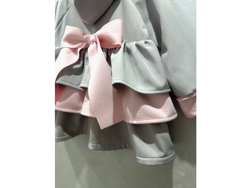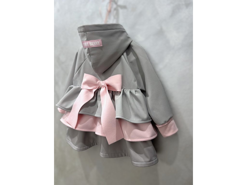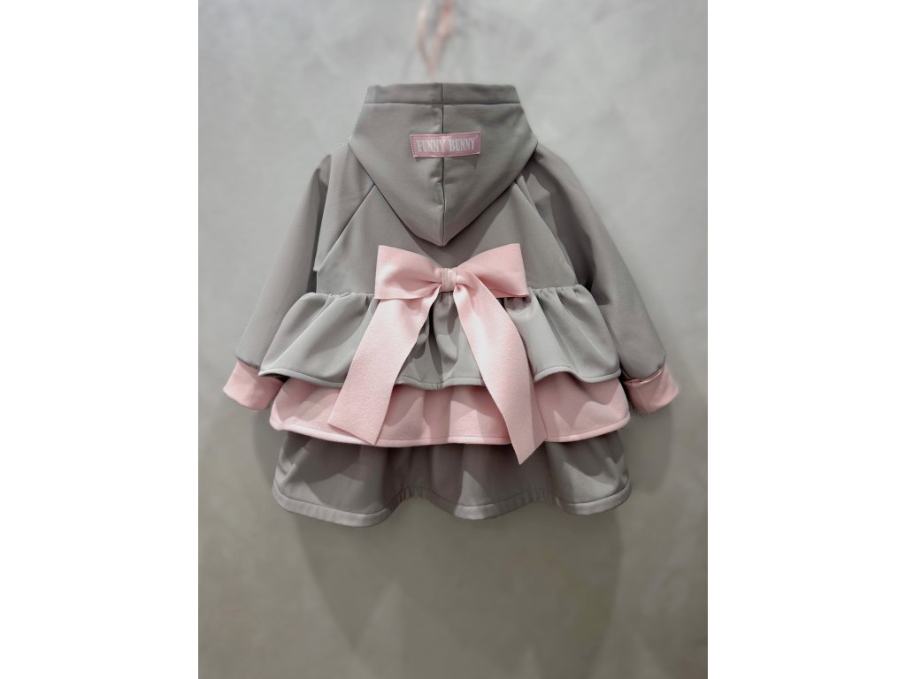 Pískací 3volánový softshellový kabát - sv. sivý