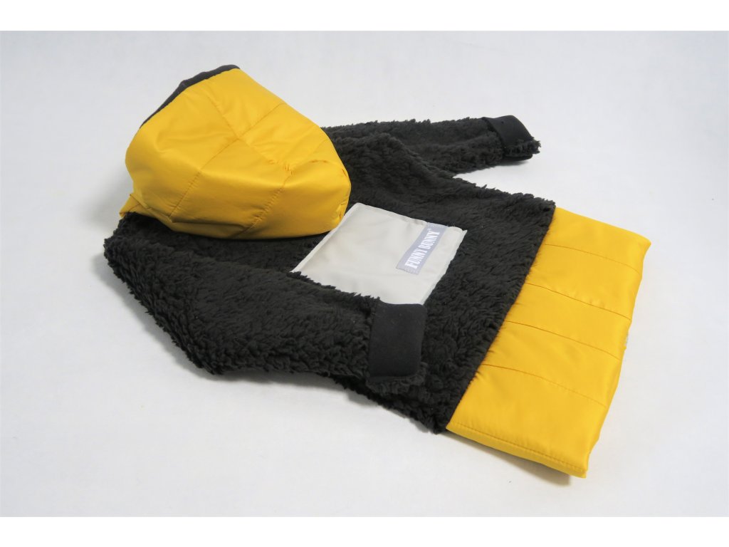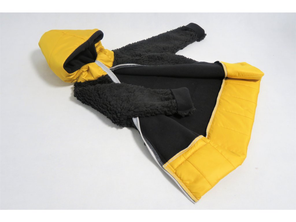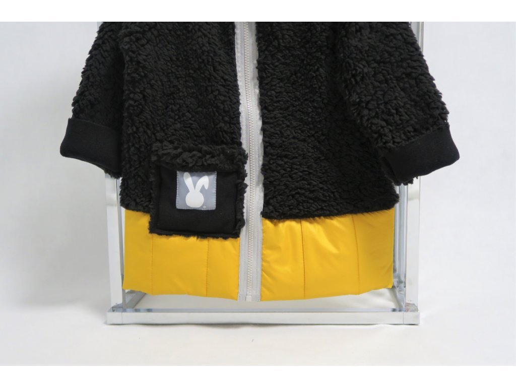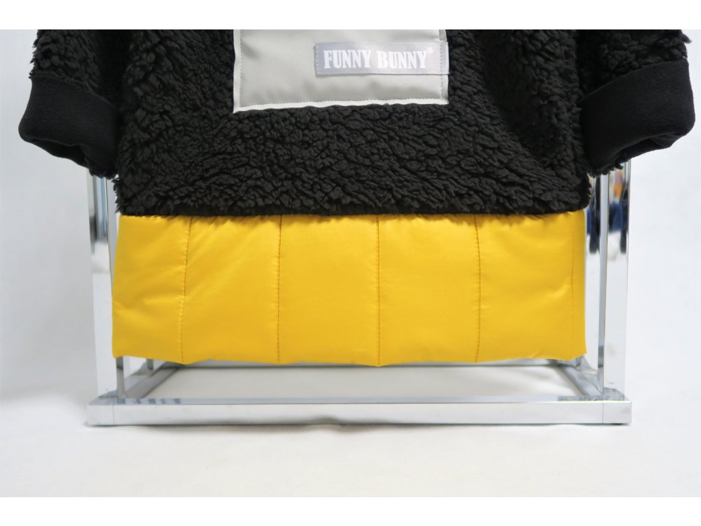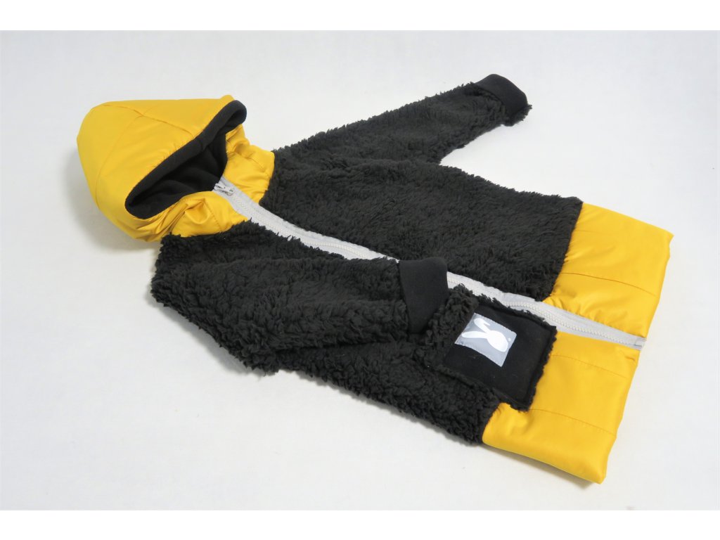Pískací huňáčik čierna kožušina/horčicový šušťák