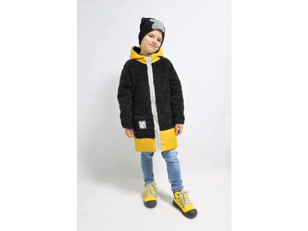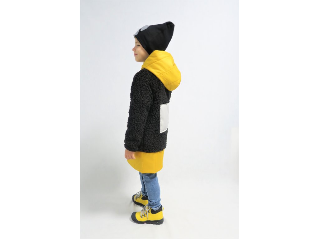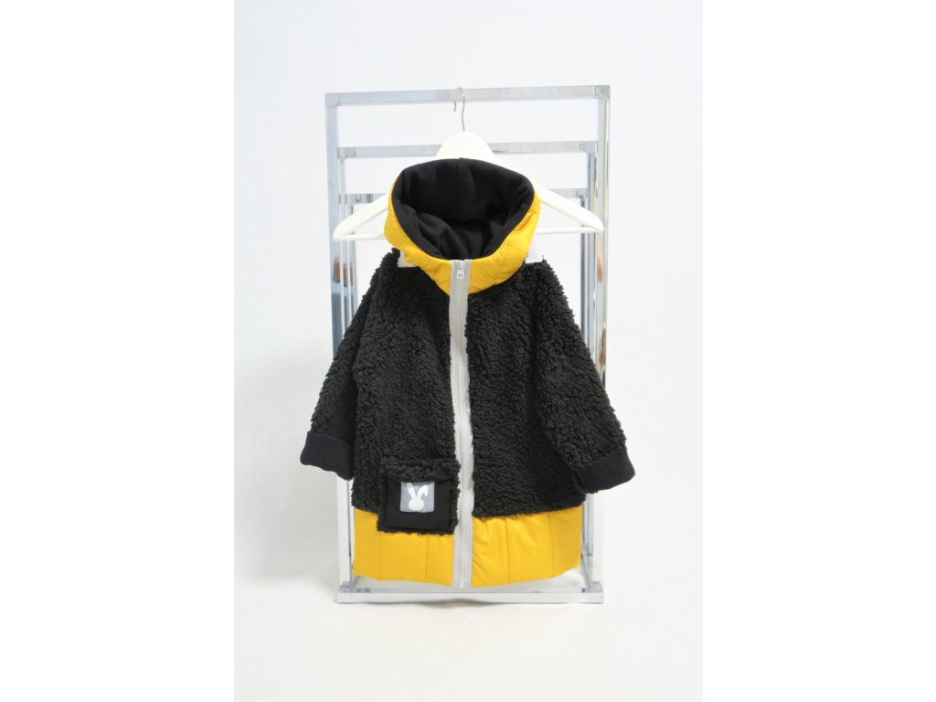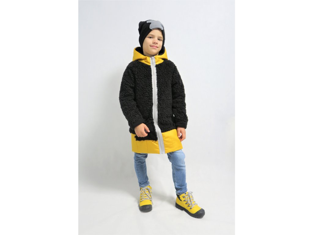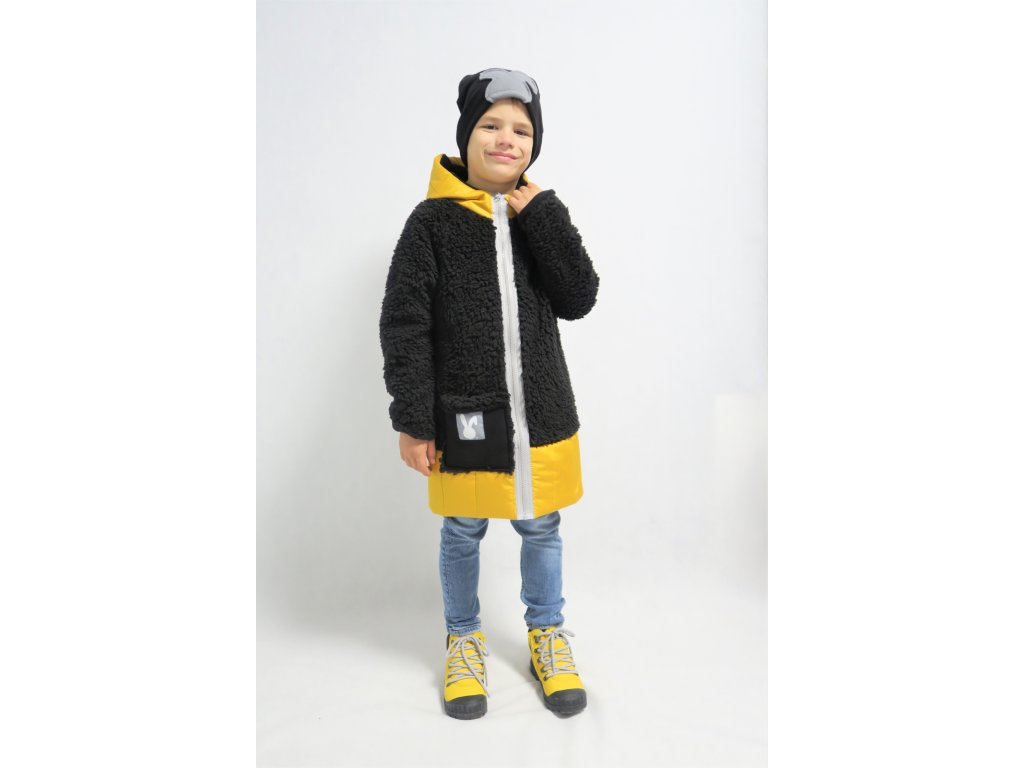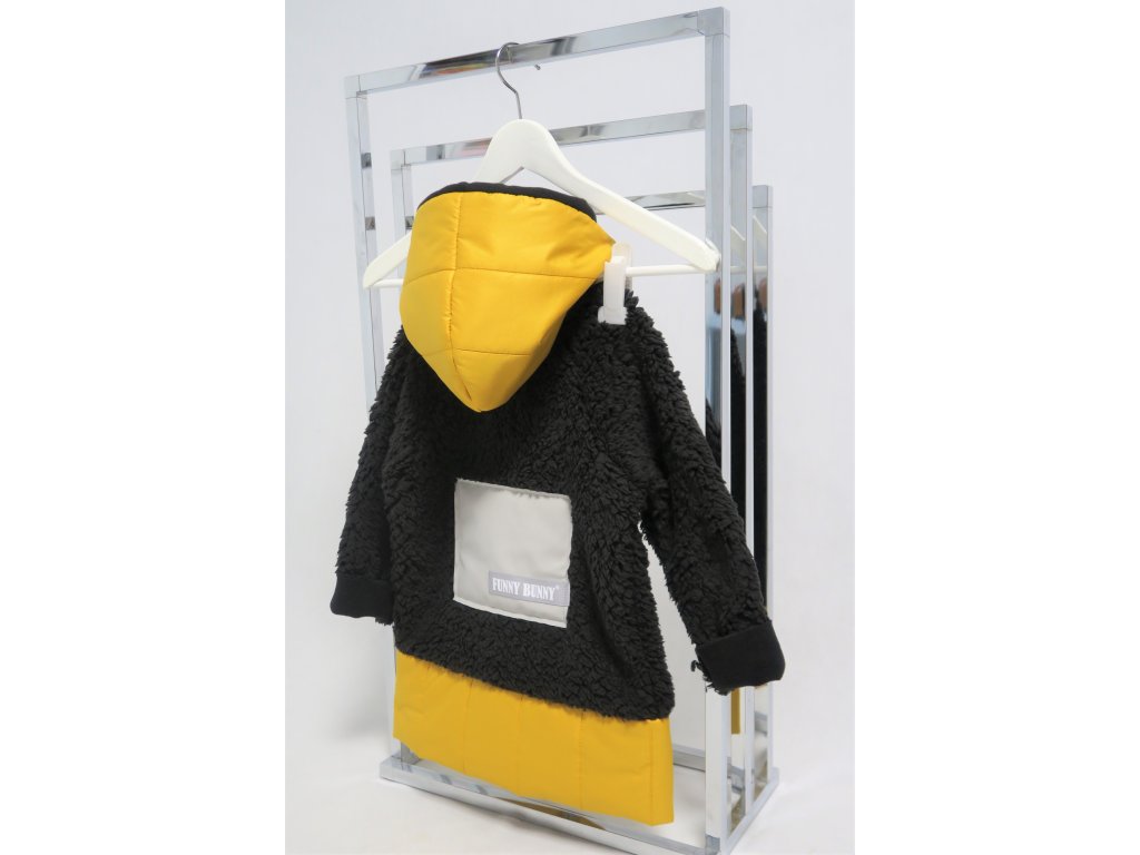 Pískací huňáčik čierna kožušina/horčicový šušťák