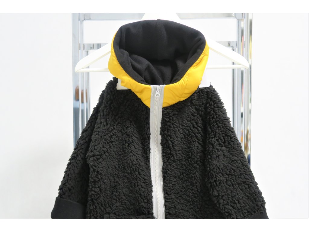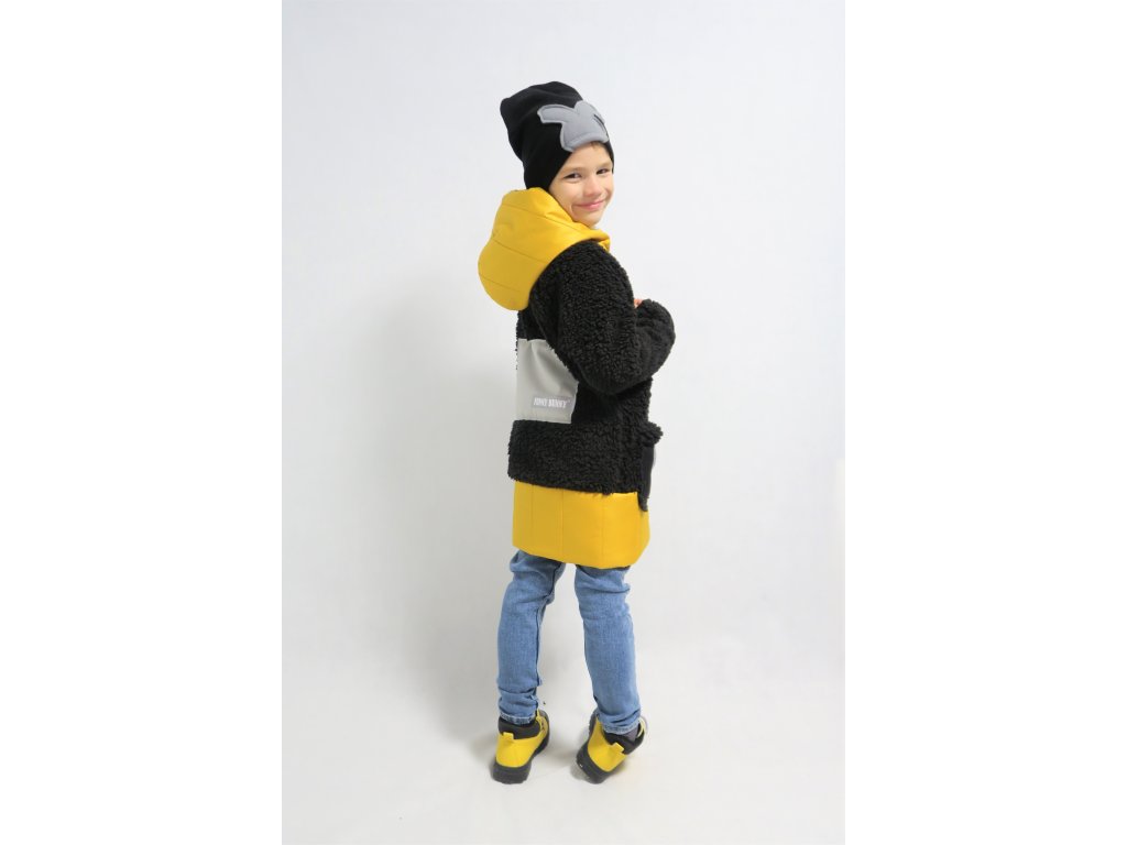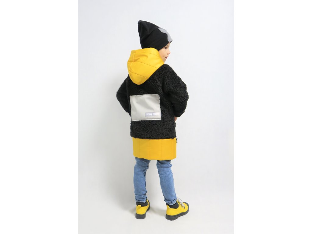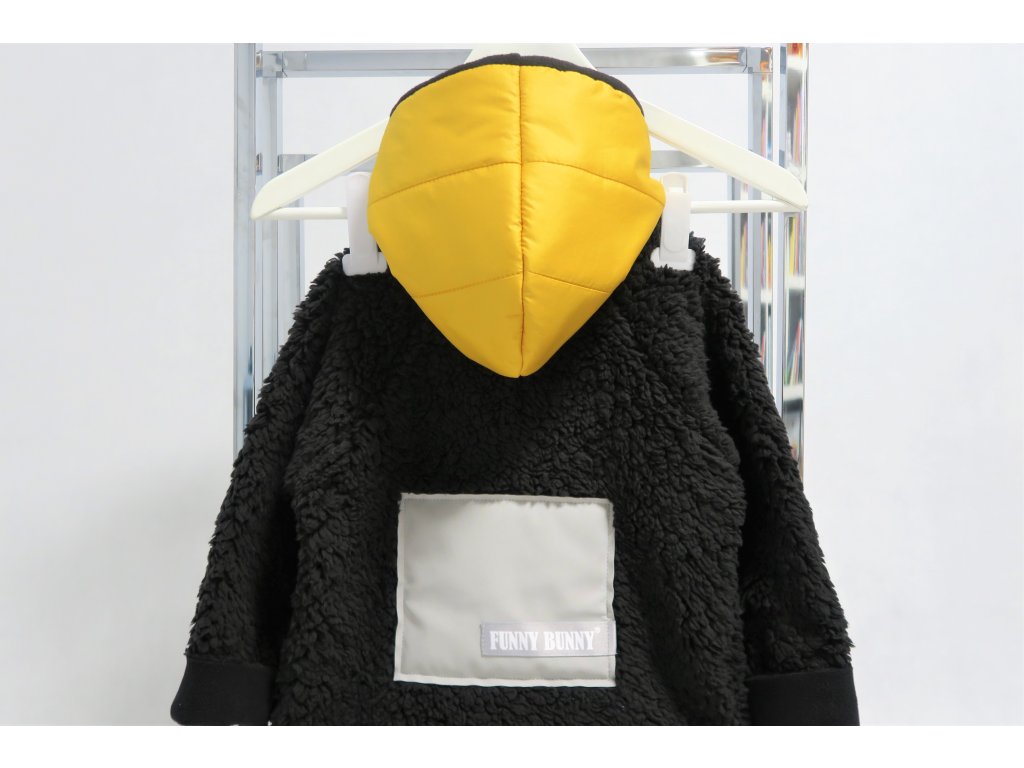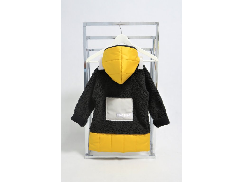 Pískací huňáčik čierna kožušina/horčicový šušťák