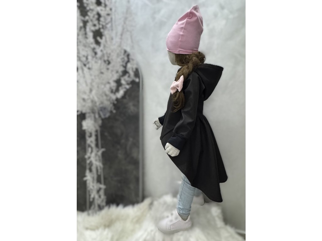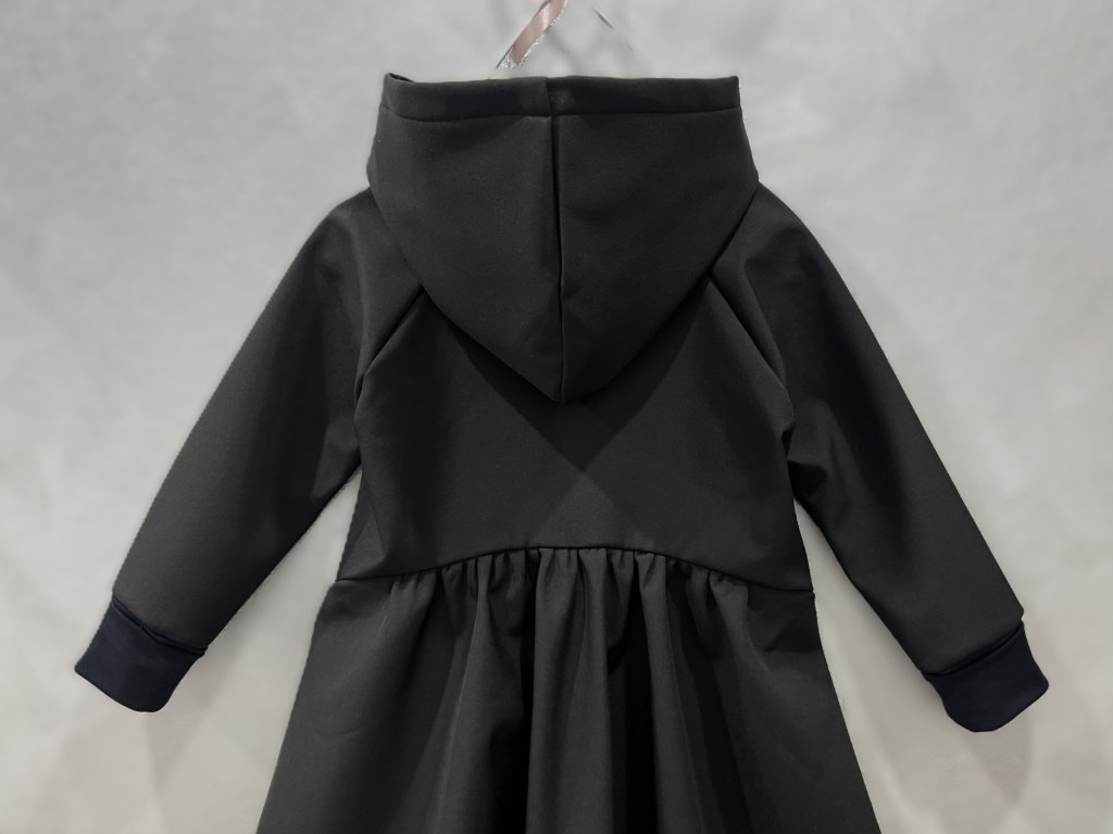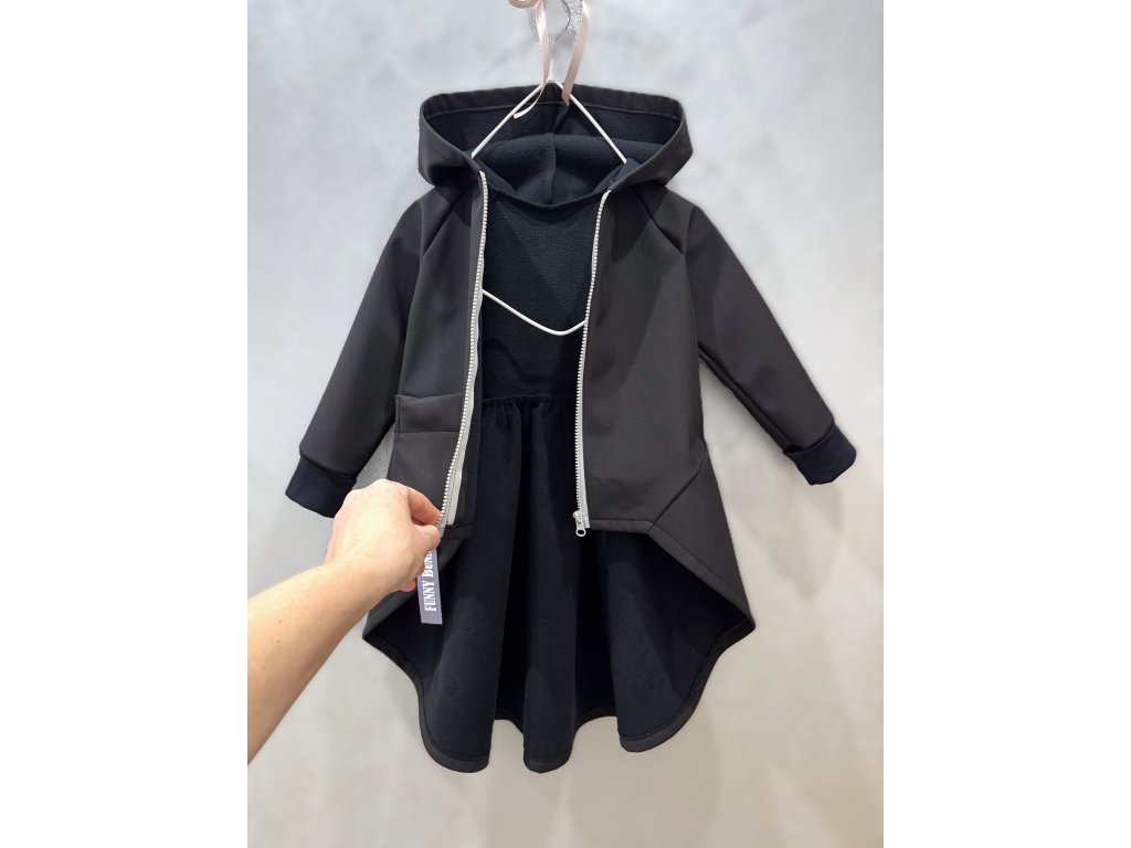 Pískací softshellový kabátik s nariaseným zadným dielom čierna