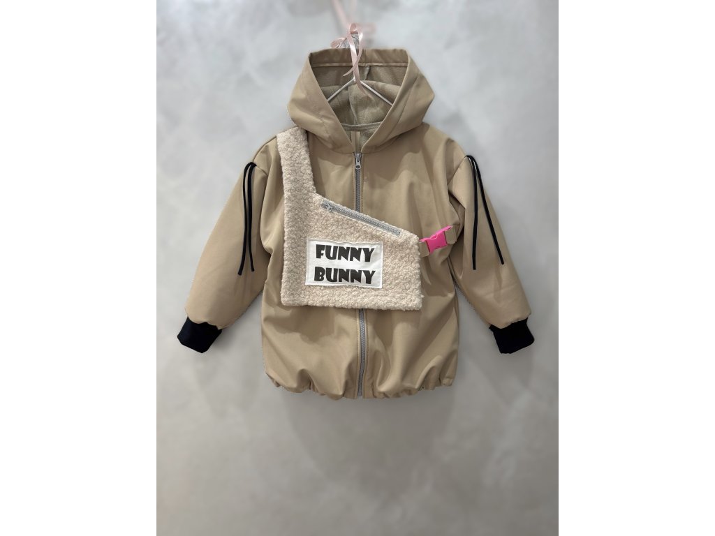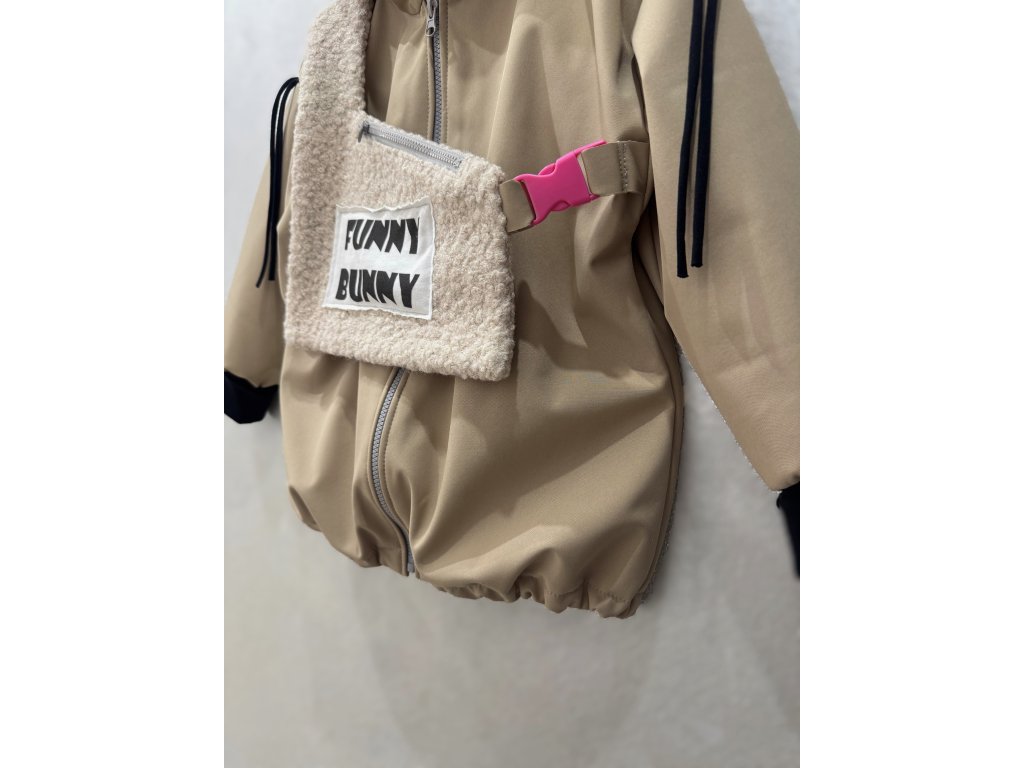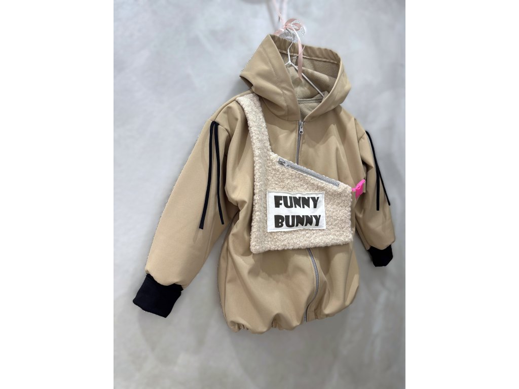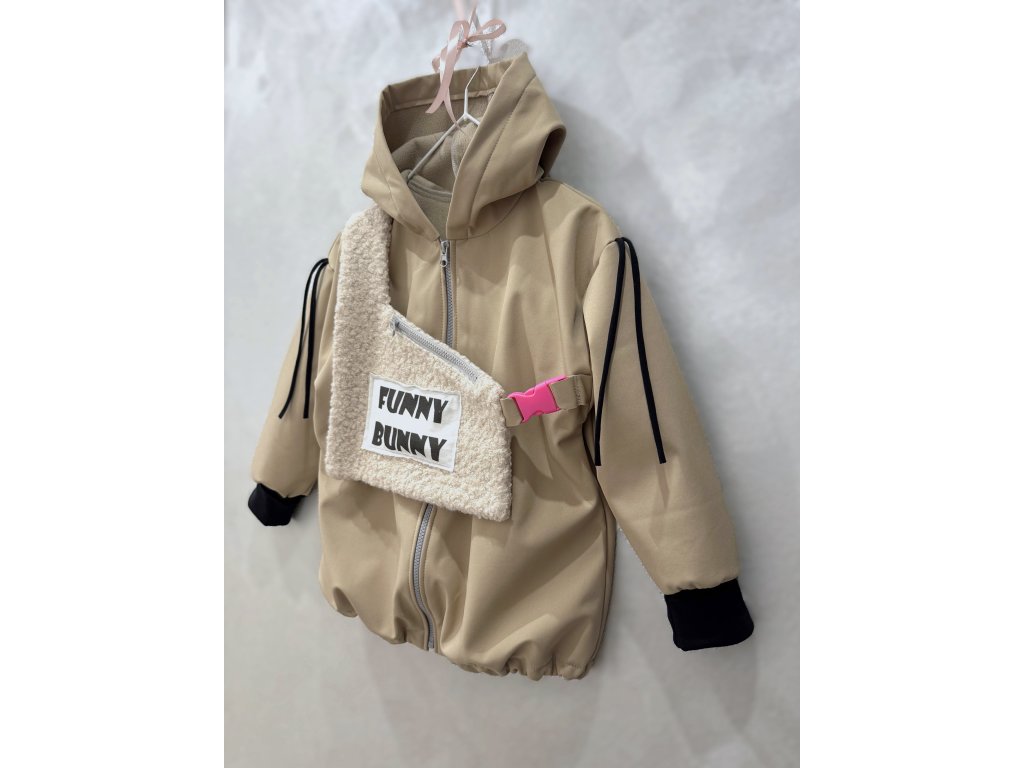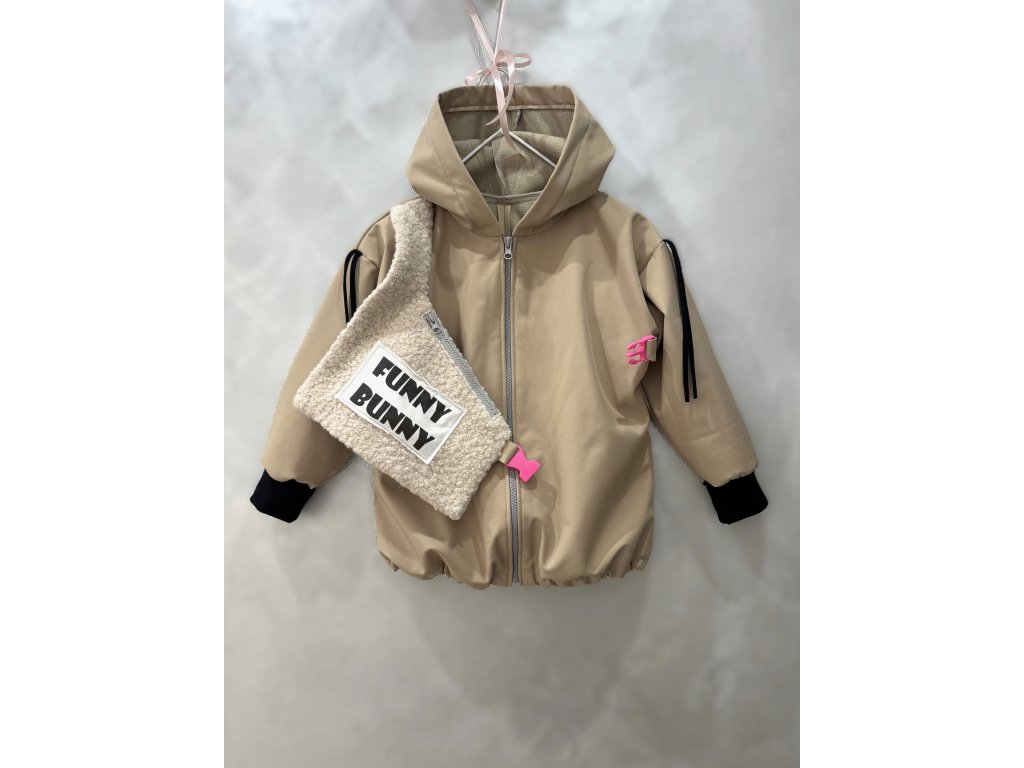 Softshellová bunny bunda s dizajnovým 3D doplnkom - piesková