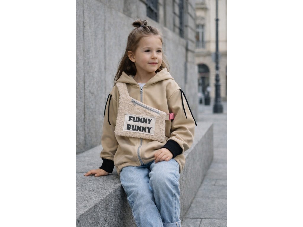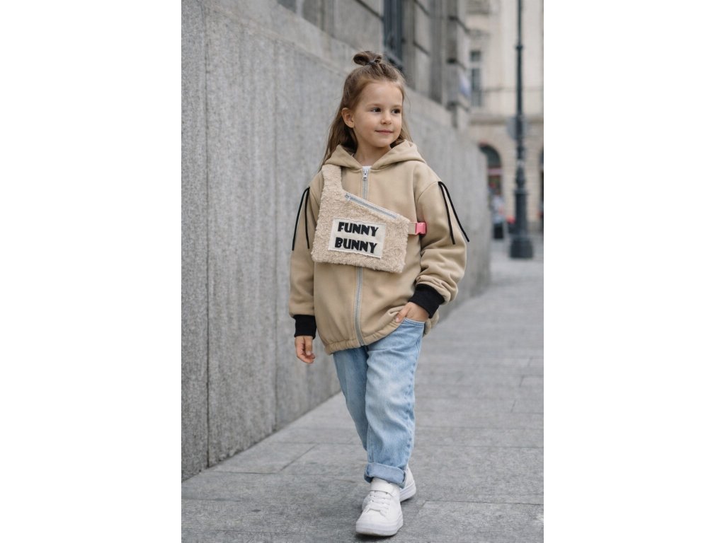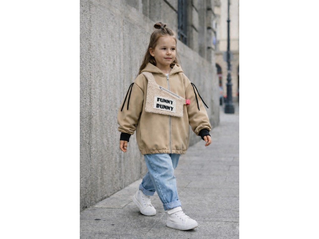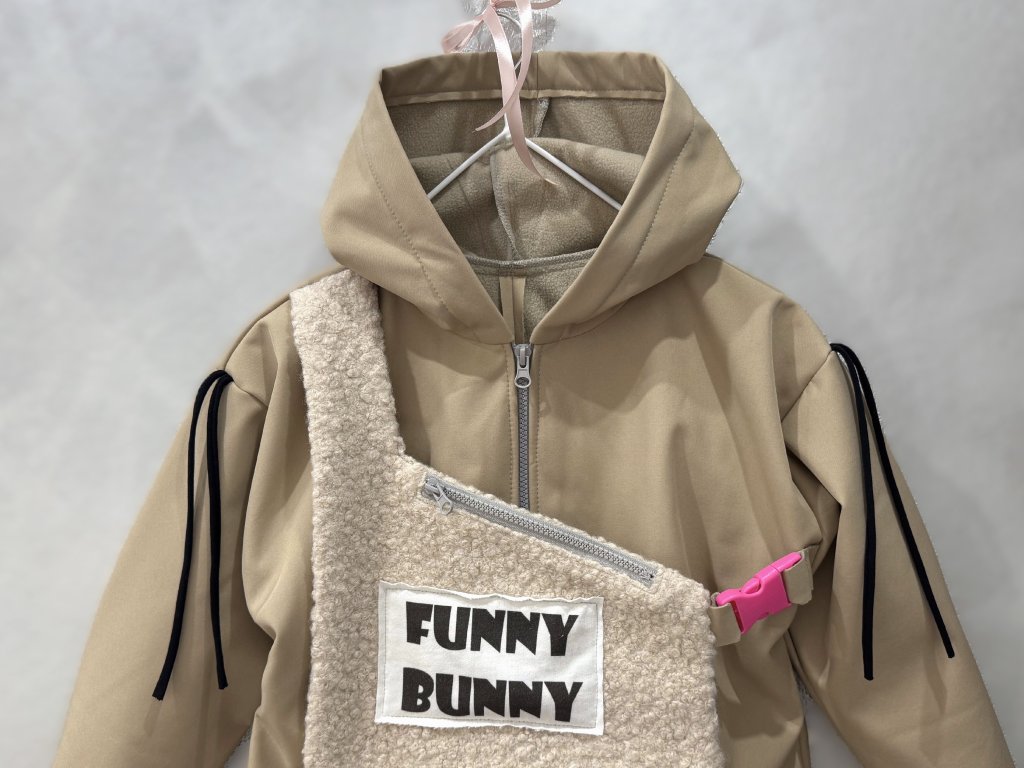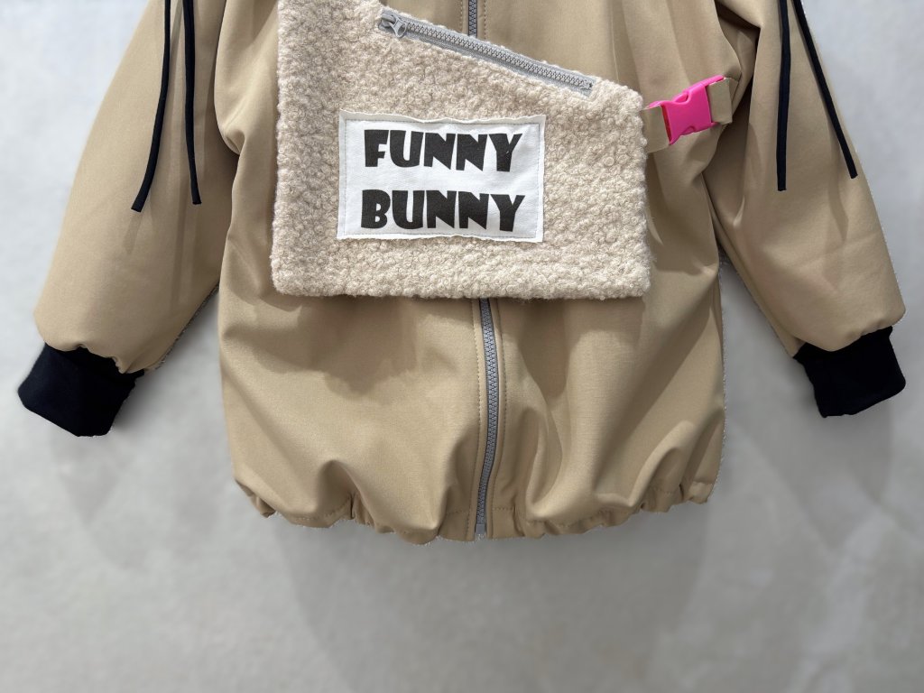 Softshellová bunny bunda s dizajnovým 3D doplnkom - piesková