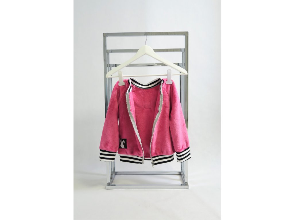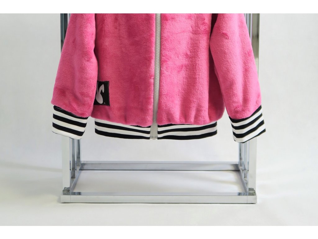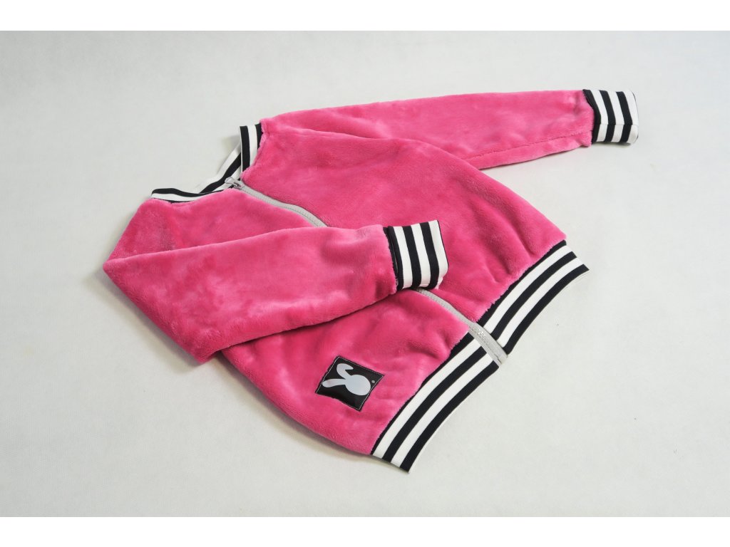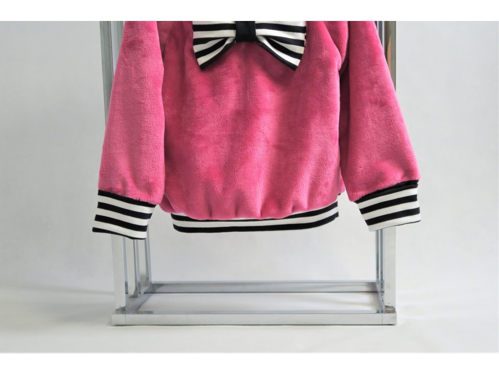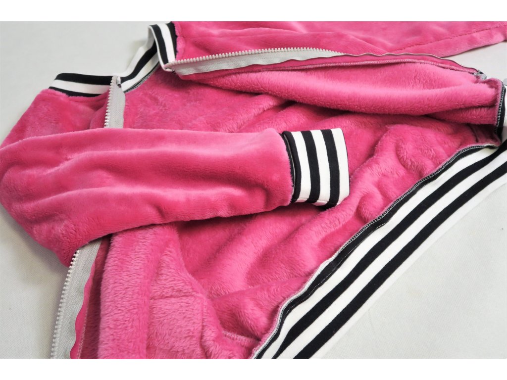 Pískacia hebučká teplá mikina cyklamén/čb pásik