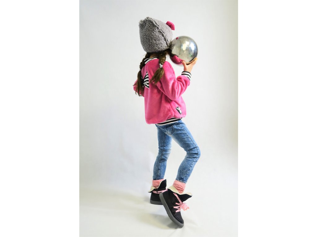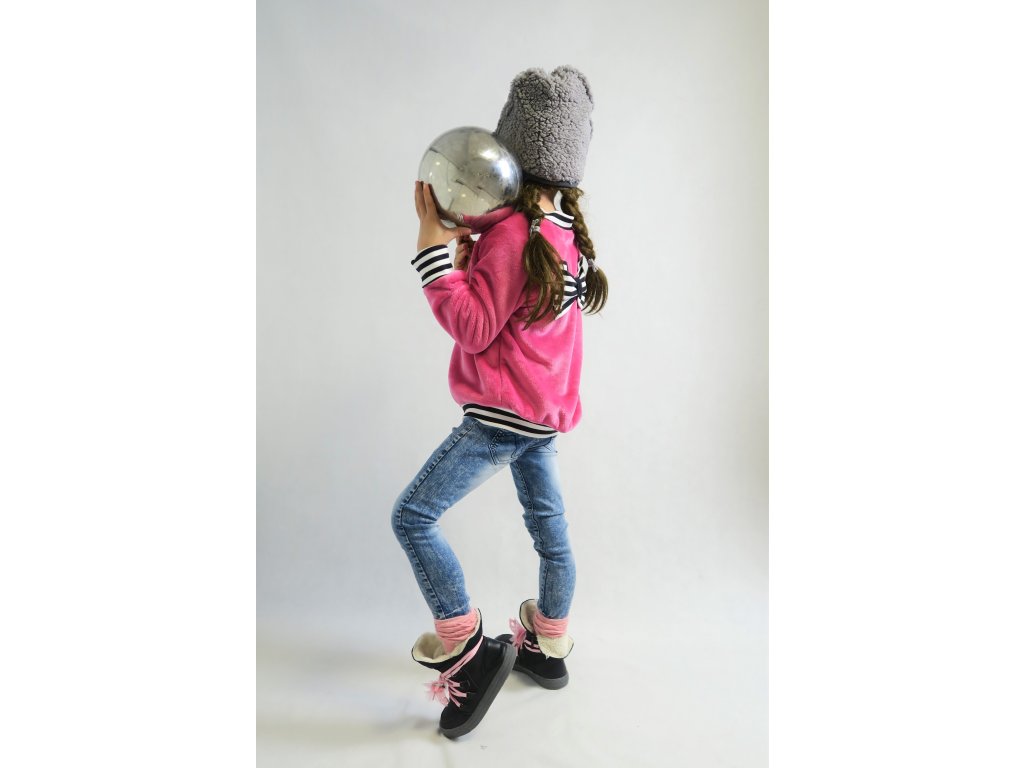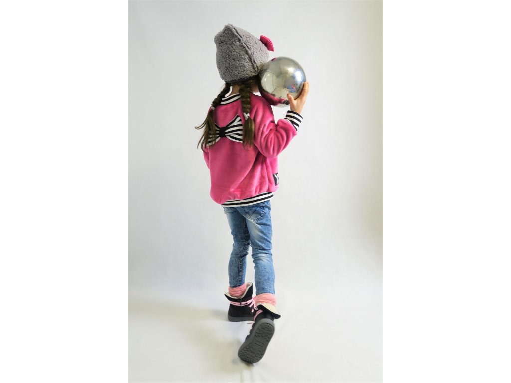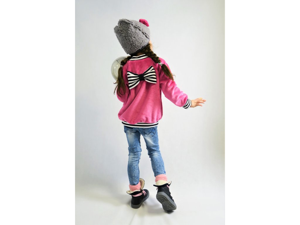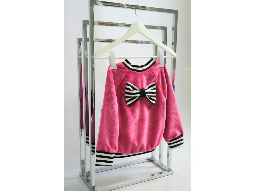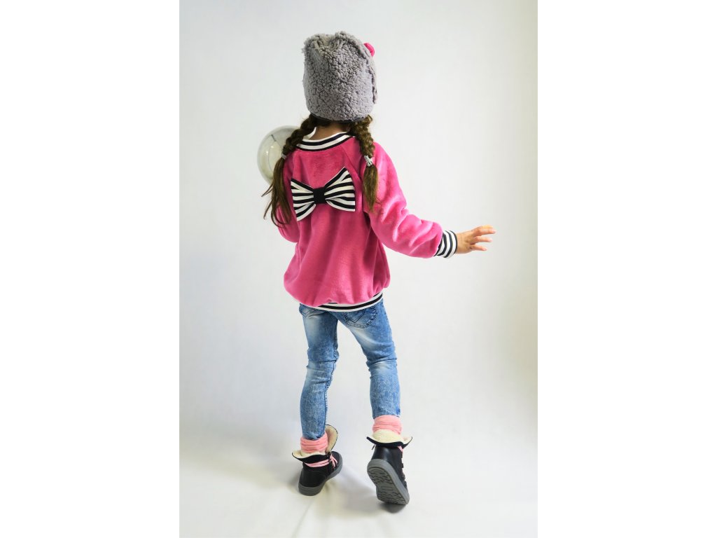 Pískacia hebučká teplá mikina cyklamén/čb pásik