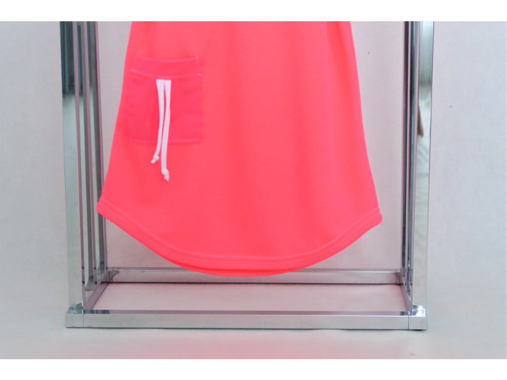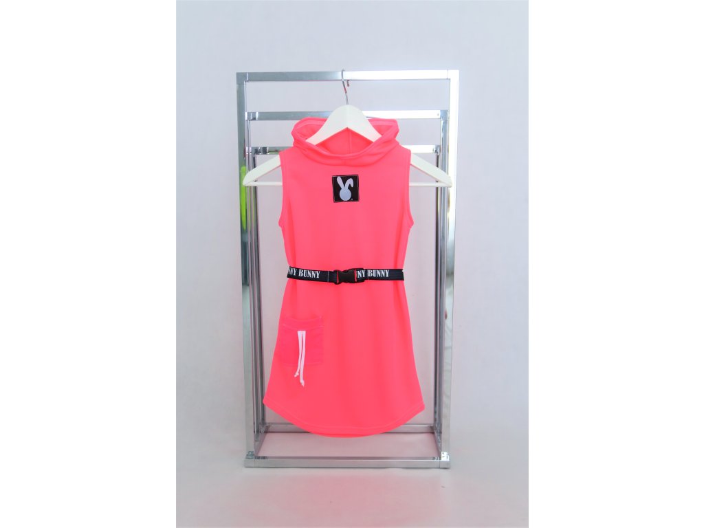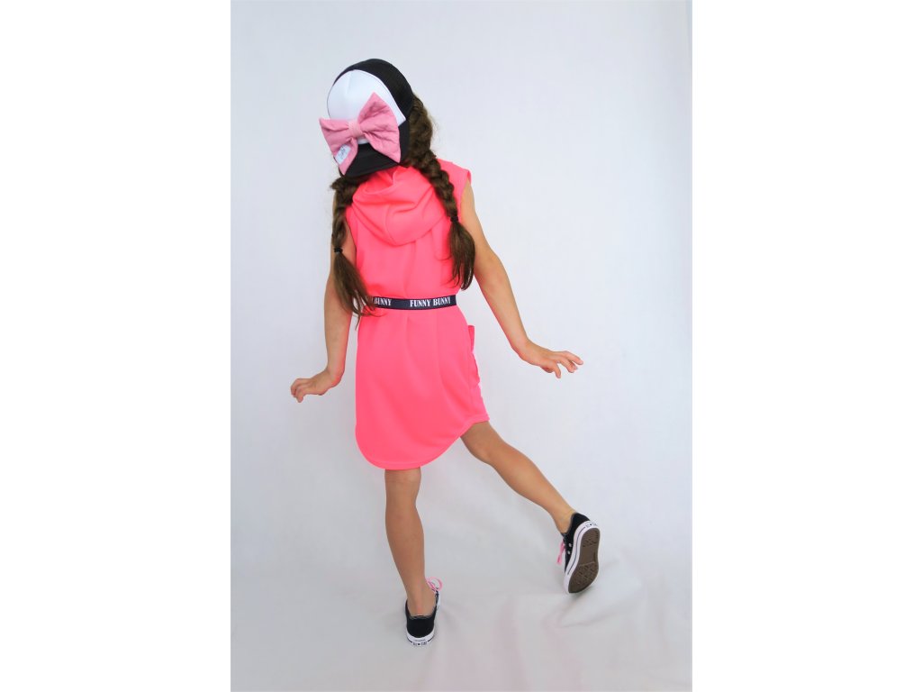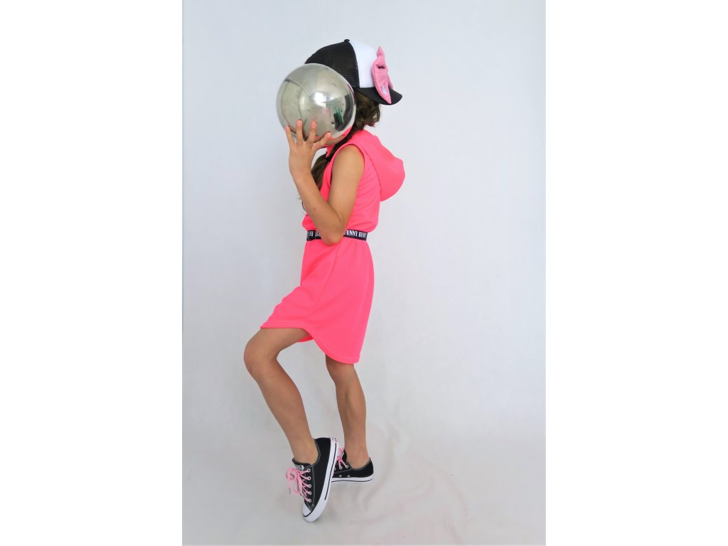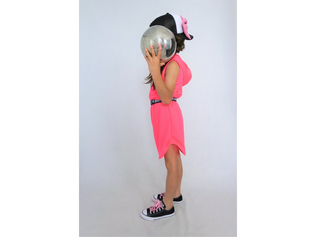 Pískacie šaty s opaskom z dresoviny - neón ružová