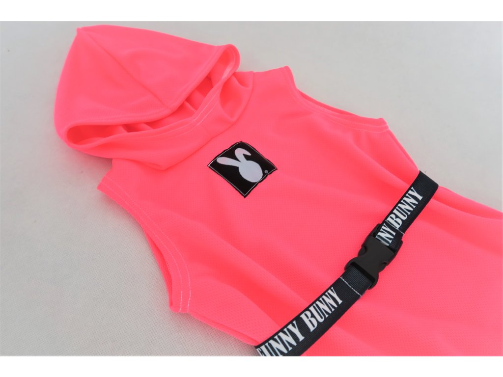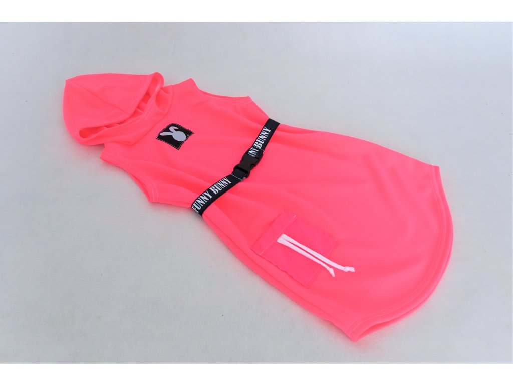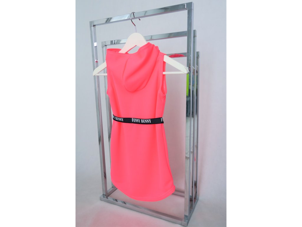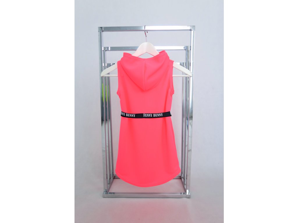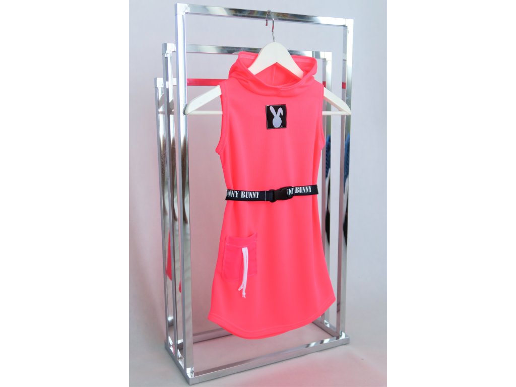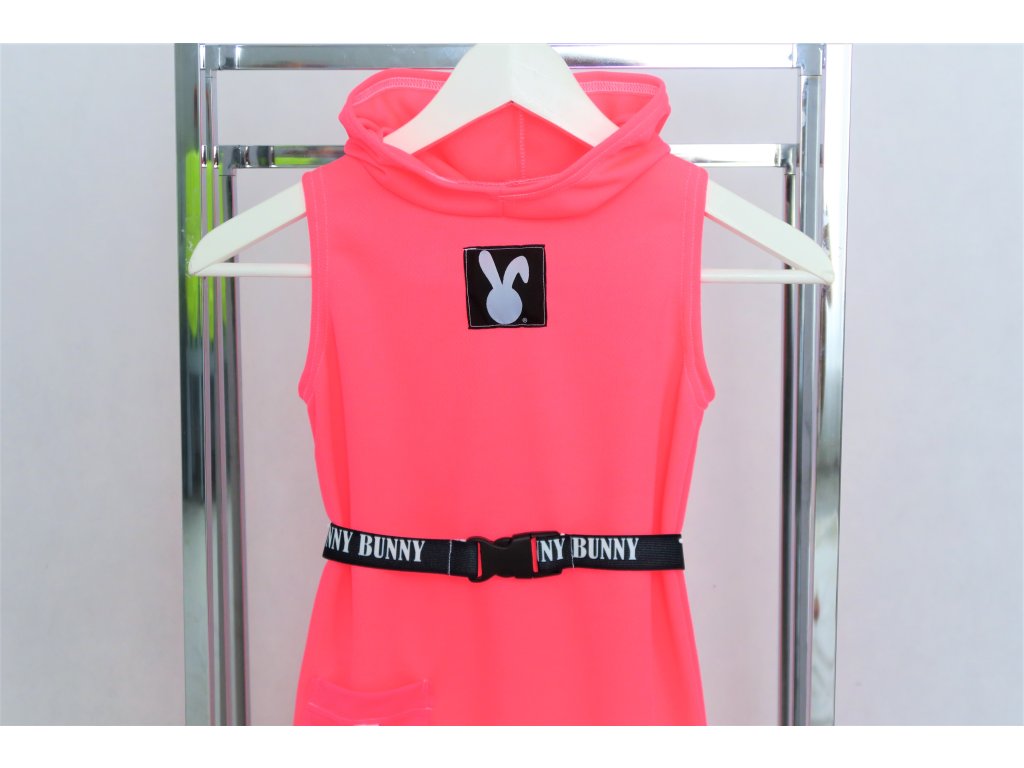 Pískacie šaty s opaskom z dresoviny - neón ružová