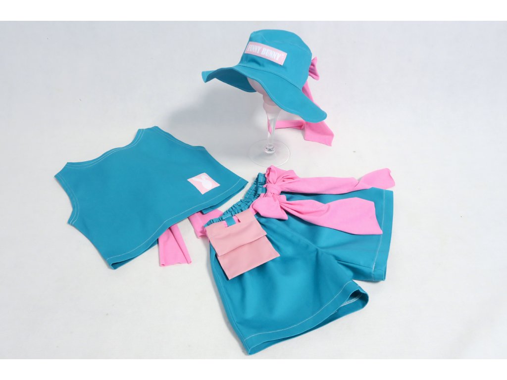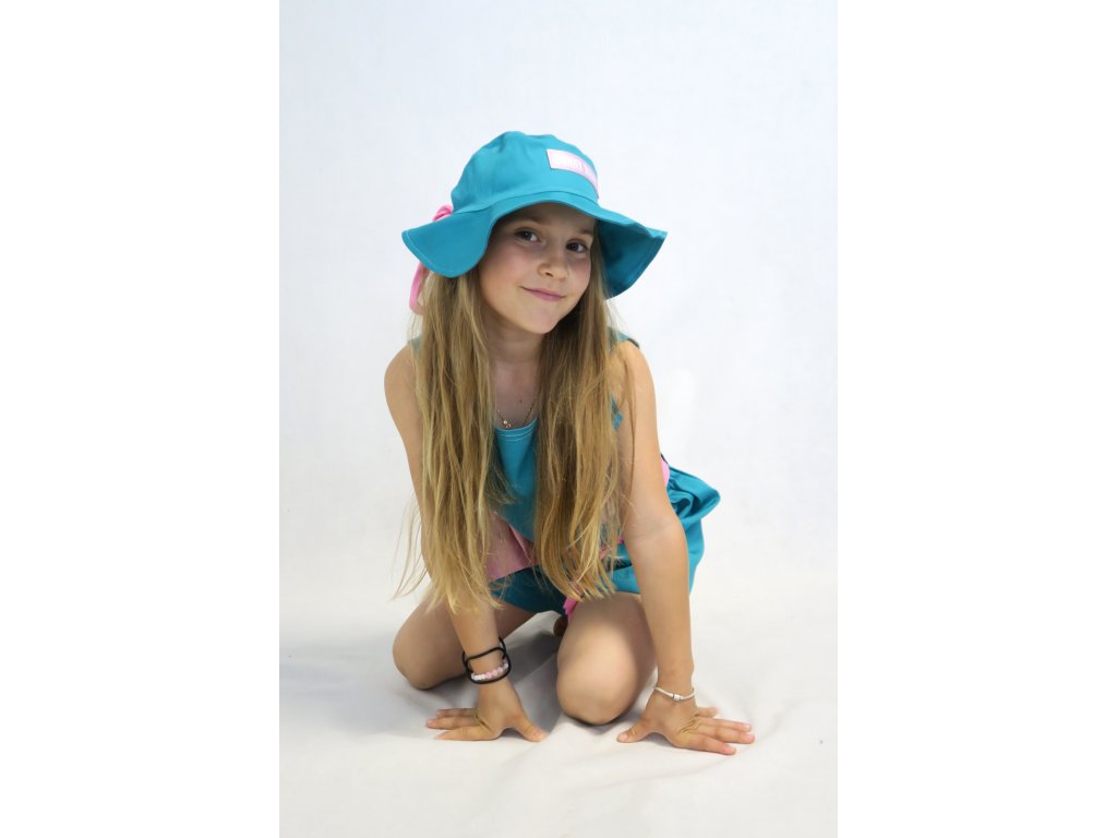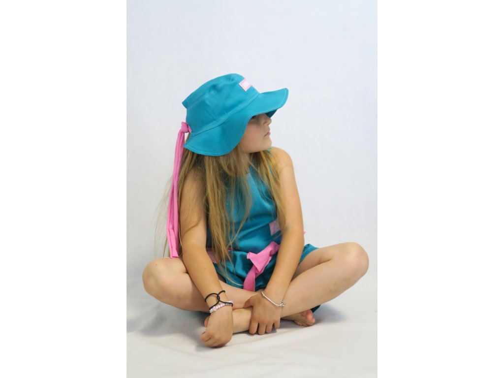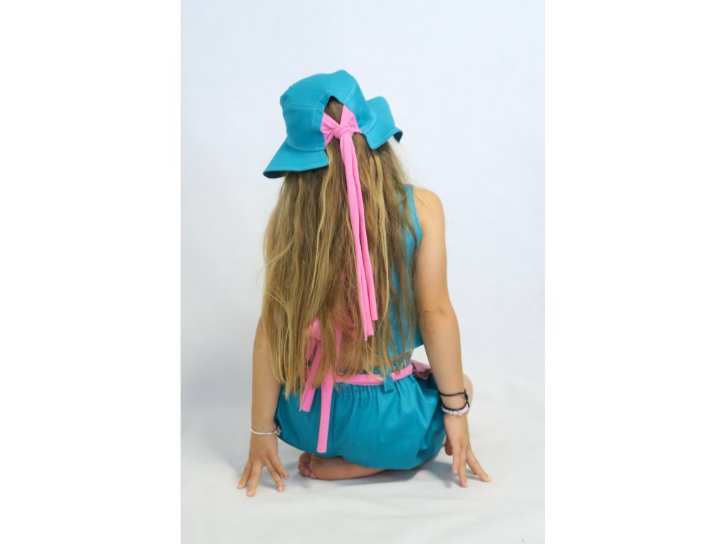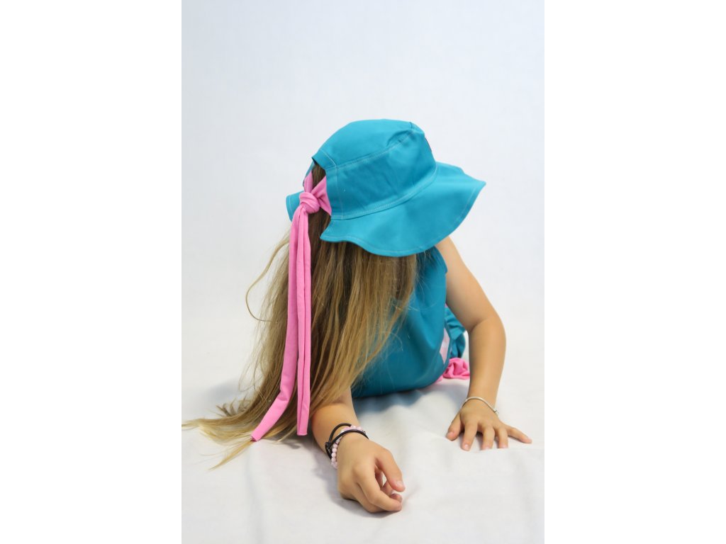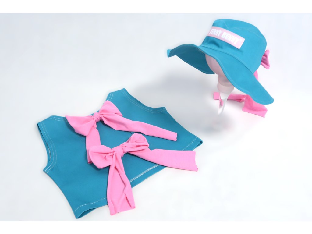 Klobúky sú na leto ako stvorené - chránia hlavičku, aj krk a tiež perfektne dotvoria každý outfit. A tie naše sú špeci v tom, že majú v sebe ukryté pískatko :-). Ušité sú z jemne elastického plátna. Vpredu páska Funny Bunny, nech každý vie, že ste skrátka Funny Bunny positive. Tento model je vzadu otvorený a môžete si ho zaviazať na uzlík alebo mašličku. Krásna kombinácia tyrkys zelenej a ružovej ♥.